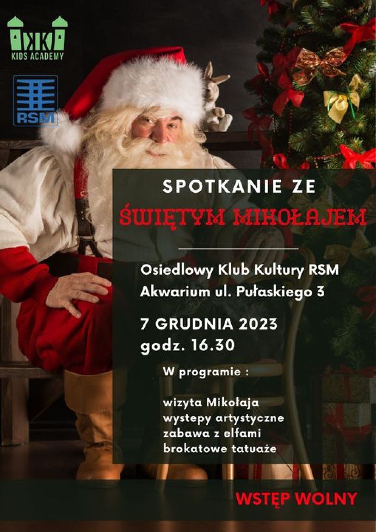 Zapraszamy na spotkanie ze Świętym Mikołajem 7 grudnia o 16:30
