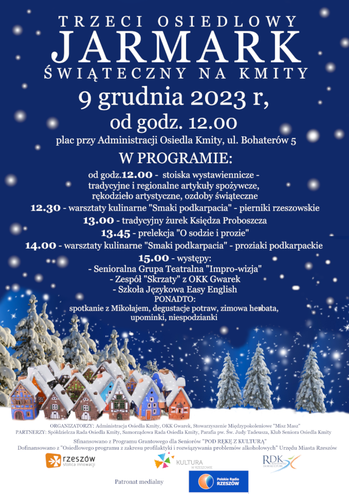 Impreza odbędzie się 9 grudnia 2023 r. od godz. 12.00, na dziedzińcu budynku Administracji Osiedla Kmity przy ul. Bohaterów 5